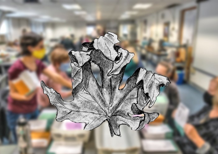 546...in progress – Day IX – 215 leaves…and the pencils are getting shorter.