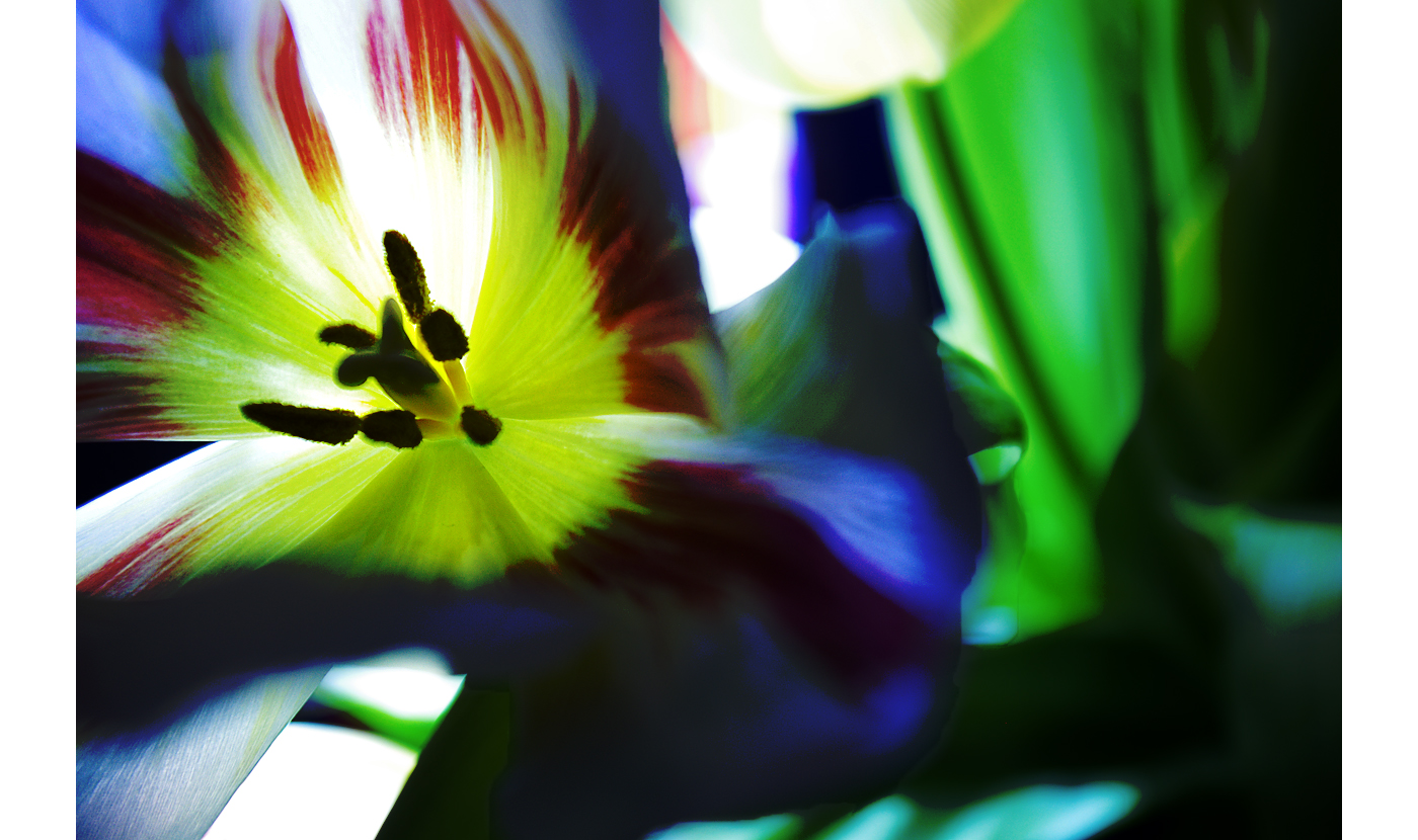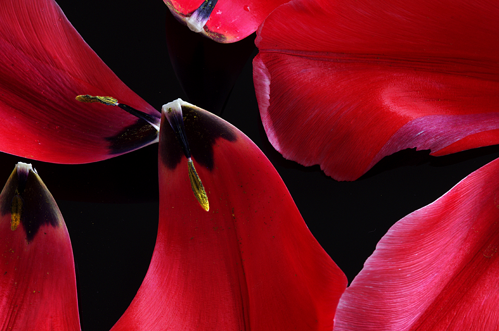 From the depth of one of the red tulips.
