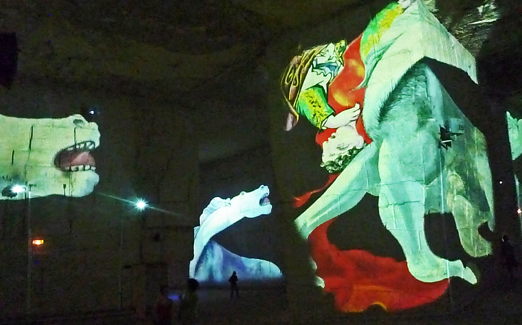 …2009 was the year of Picasso and Cézanne in Provence, France. As part of the celebrations Cathedrale D’Image in Les Baux de Provence projected gigantic images of Picasso’s paintings on the walls of the Carrières du Val d’Enfer, a quarry that was created to extract white limestone to construct the Chateau and Les Baux. On our trip to Provence that summer I took these photos during a 30 minute presentation deep in the heart of the quarry. Whilst the images are not perfect because of the limited light I hope you will agree that they have a somewhat eerie quality about them. In 1959, Picasso took part in Jean Cocteau’s “Testament of Orpheus”, which was filmed inside the quarries.