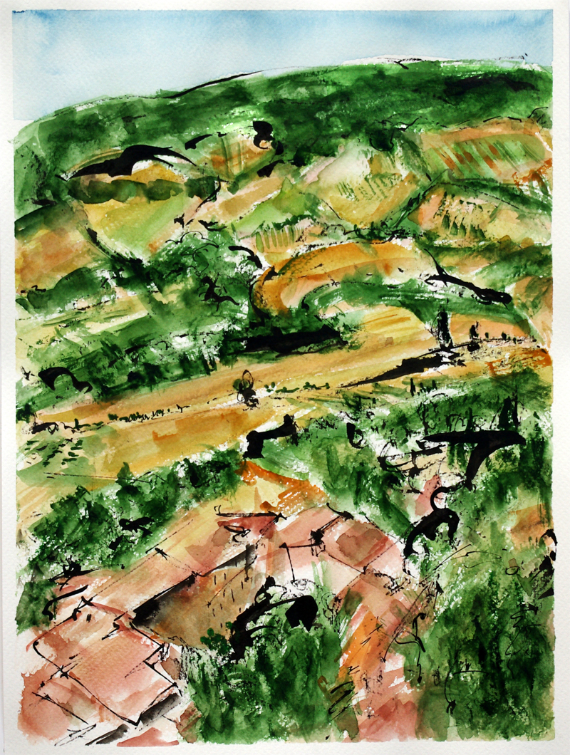 A hillside in Tuscany remembered…31.1.16, matted and framed…